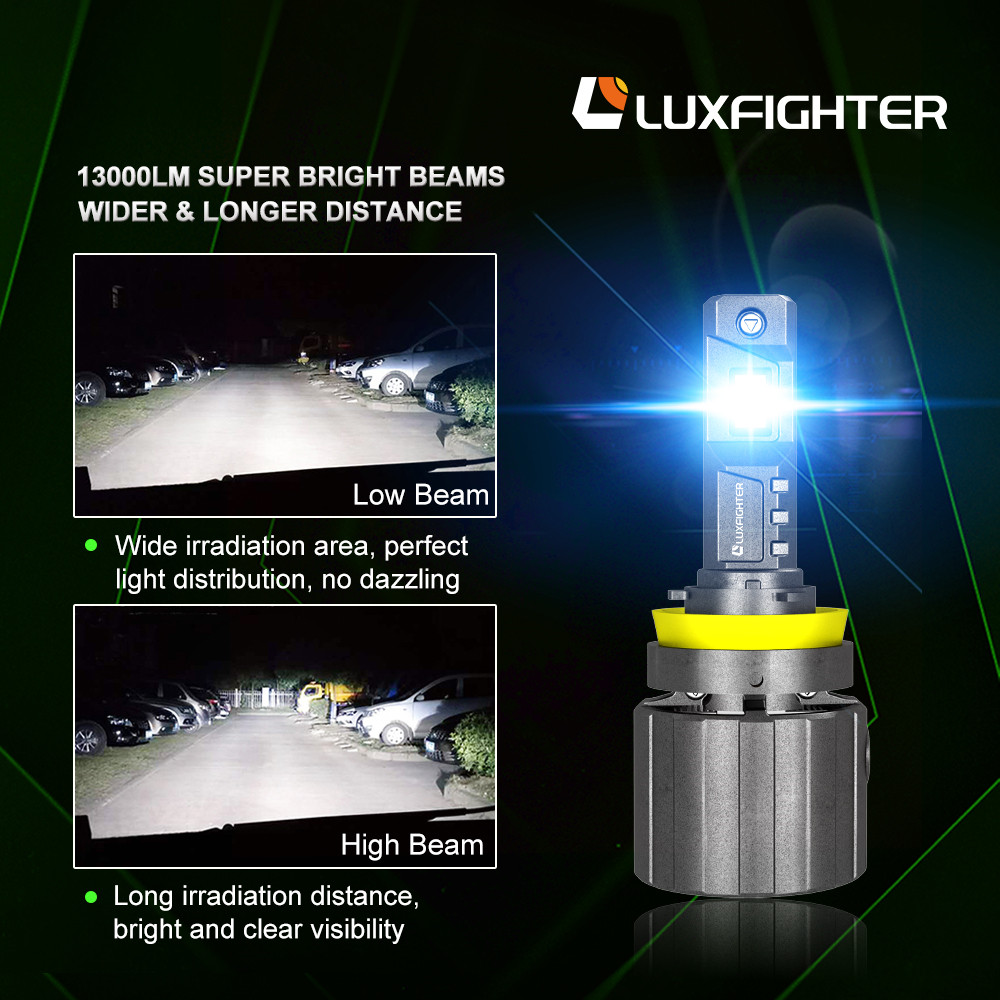 1. 600% Brightness Improved: The Luxfighter upgraded H7 LED bulbs are 130W per set, providing up to 600% brighter than OEM halogen LED bulbs. 6000-6500K cool white and 12,000LM bring you a clear vision when driving